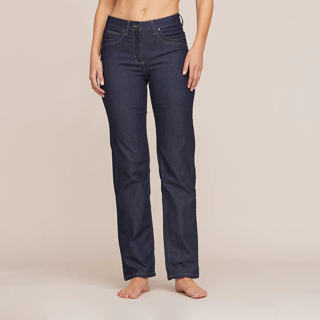 Pasformen Straight sidder til i taljen og har næsten samme vidde fra lår til ankel.