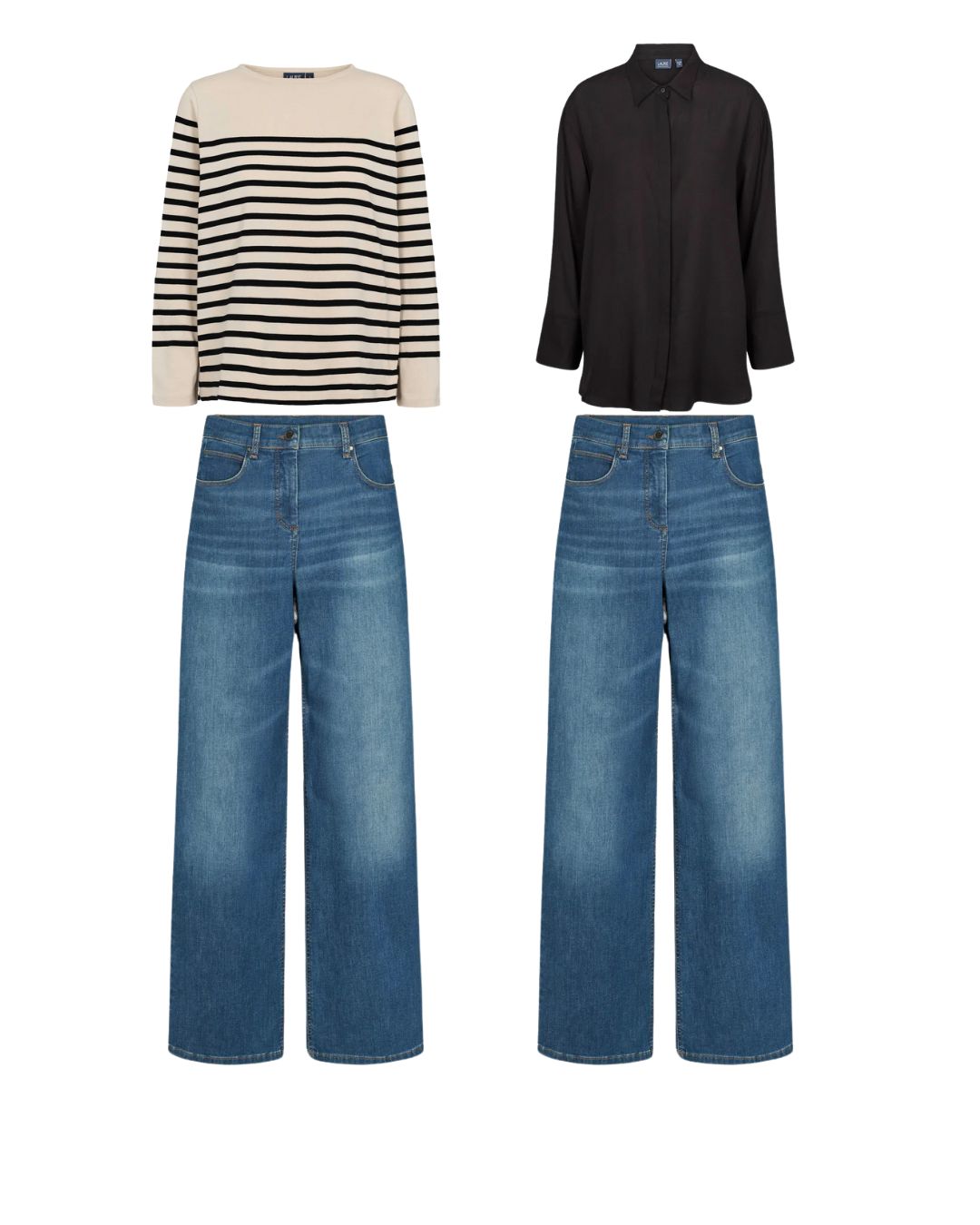 Om dagen kan du parre dine bukser med en klassisk striktrøje eller en løstsiddende skjorte for et afslappet og komfortabelt look - perfekt til hverdagen. Når aftenen nærmer sig, kan du nemt opgradere dit outfit ved at skifte til en smuk top eller bluse i stedet, alt efter hvilket udtryk du ønsker. For eksempel går løse sommerbukser og løse cowboybukser perfekt sammen med en figursyet top for at skabe en fin kontrast og fremhæve din figur. Det er en hurtig og nem måde at gå fra et hverdagslook til et mere festligt look – blot ved at udskifte overdelen.