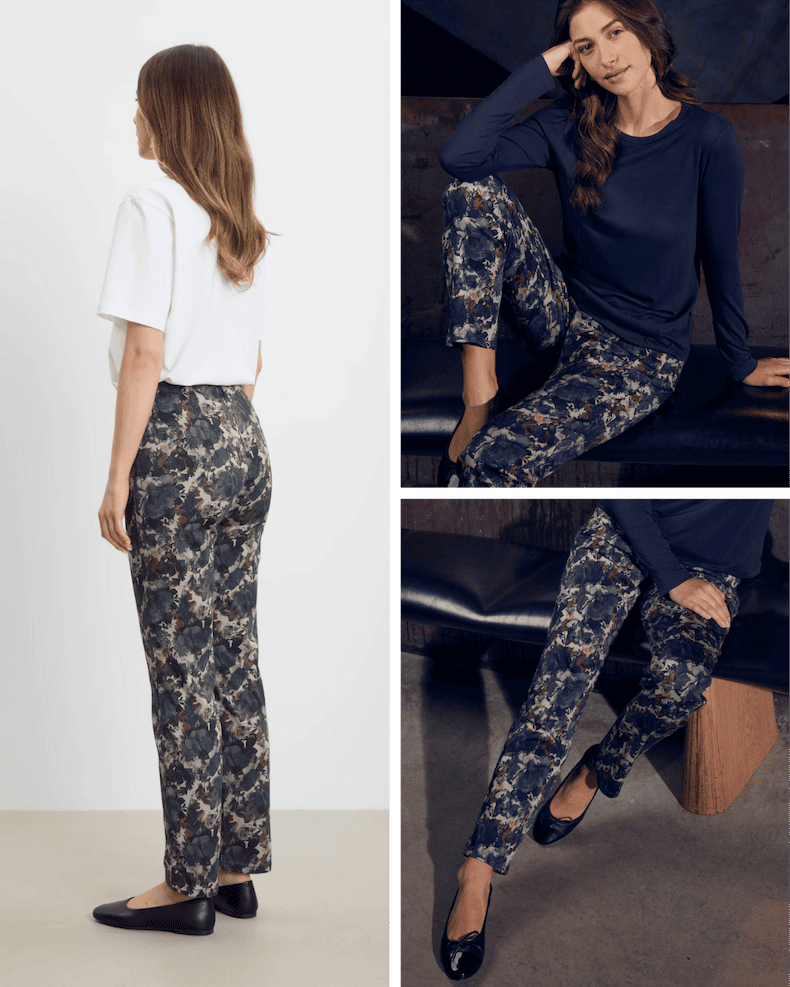 Marlene fremhæver også det helt nye print Stone Flower Print. De flotte blålige toner passer perfekt til sæsonens garderobe.