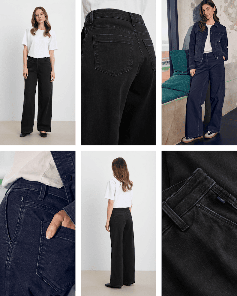 En skøn nyhed med et klassisk jeanslook, løse bukseben og elegante, skrå lommer foran. De er bløde, afslappede og så behagelige, at du får lyst til at tage dem på igen og igen.