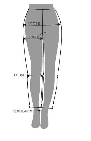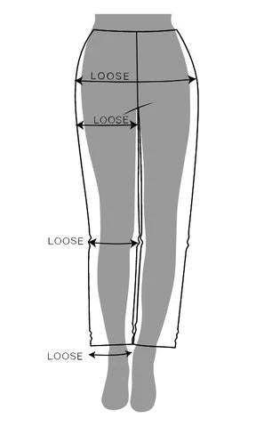 Pasformen Relaxed har samme bensnit som Regular, men er løsere fra talje til fod, og har elastik i taljen.
